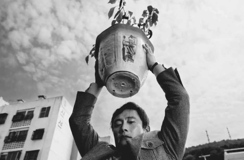 Parfois, tout à fait symboliquement, je choisis au hasard une séance de ciné le dimanche, pour pouvoir dire que j’ai mis le nez dehors le week-end. C’est ce que j’ai fait ce dimanche là. J’ai vu qu’un film coréen allait être diffusé à 16h, je me suis dit qu’il y aurait des chances que le film me plaise — tu penses bien, une affiche sur laquelle on voit un type avec un pot de fleurs au-dessus de la tête — et qu’il y aurait peu de monde. C’est donc comme une fleur que j’ai débarquée à l’avant-première de Aucun autre choix de Park Chan-Wook, trottinant comme une chèvre pour embarquer dans la file d’attente, surprise par le monde que je croyais éviter.